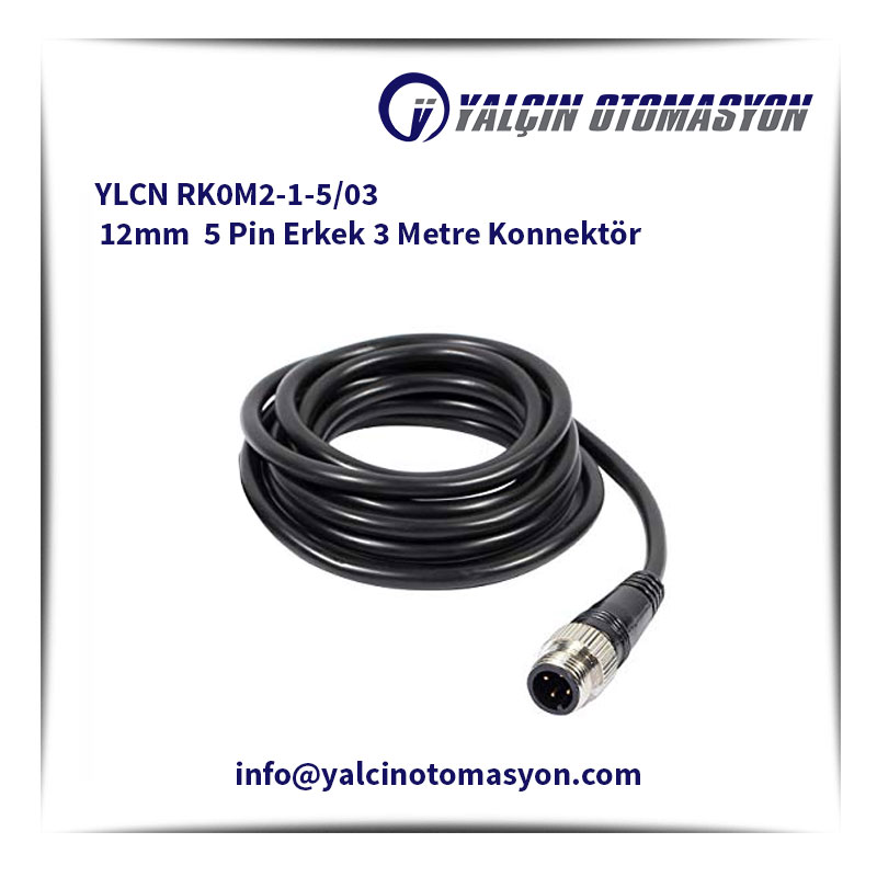 YLCN RK0M2-1-5/03 12mm 5 Pin Erkek 3 Metre Konnektör
